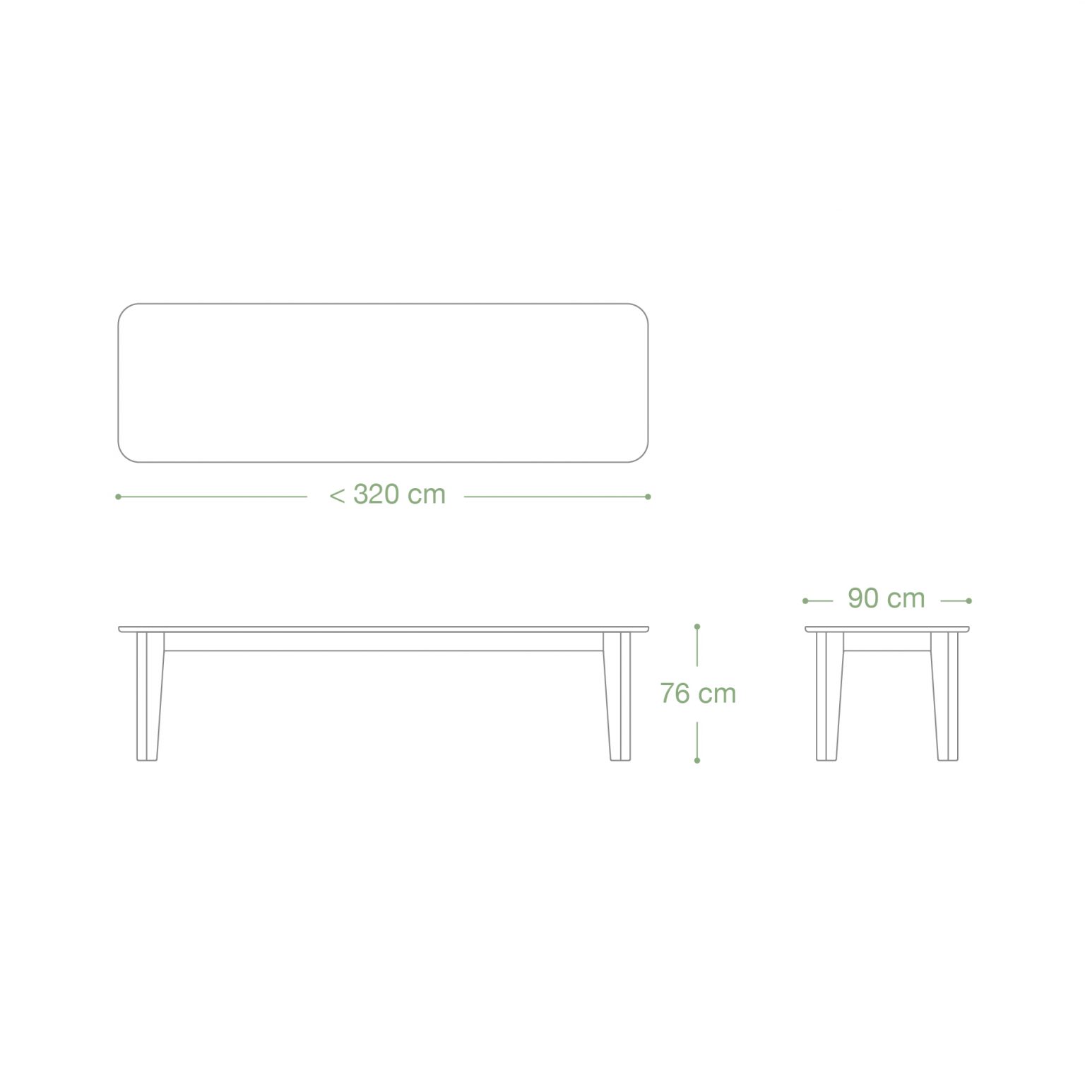 Ranke Olifant Tisch is een grote, robuuste tafel. Met een massief eikenhouten frame en verjongde poten onder een hoek van 45 graden. Het blad heeft een kern populierenhout en een grijze HPL toplaag. Dit is een tafel waar je aan kunt vergaderen, in het weekend de krant aan leest, maar evengoed uitgebreid aan kunt dineren (om daarna op de tafel te dansen…).