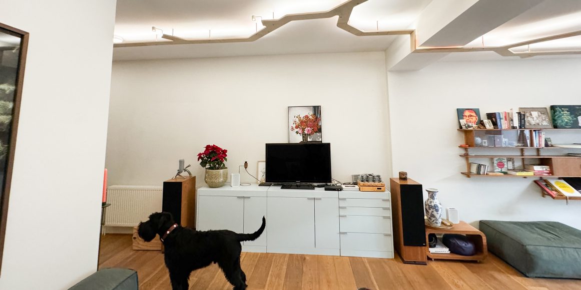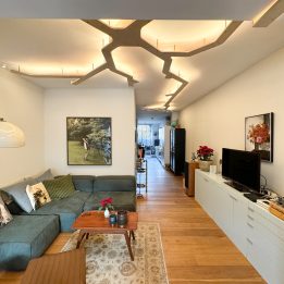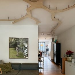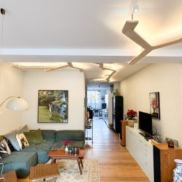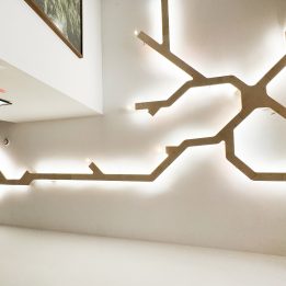 Met de Vertakte Lamp Rinne hebben we juist een roomconnector gecreëerd die als hij uit staat al een visueel spektakel is maar ook zorgt voor fijn licht gedurende de dag en ’s avonds bijgesteld kan worden om het huis te voorzien van een sfeervolle ambiance.